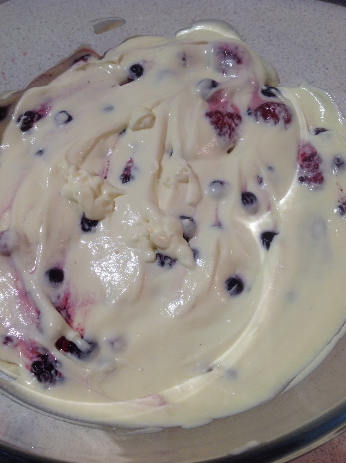 Alternate between the berries, mascapone cream and ladyfinger biscuits until the top of the container has been reached. (Tip: When layering the berries, spoon the juices over the ladyfingers.)